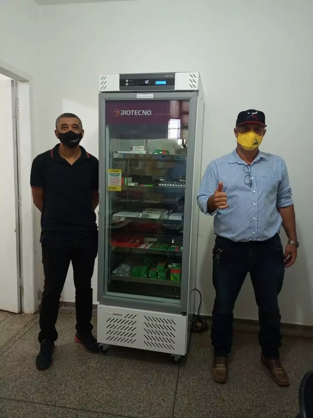 O prefeito de Japorã, Paulo Cesar Franjotti e o secretário municipal de Saúde Fábio Carlos Emborana receberam na última sexta-feira, 11 de fevereiro, a doação de um refrigerador científico com capacidade mínima de 300L (2ºC a 9ºC), a ser utilizado no armazenamento de vacinas nas unidades de saúde.