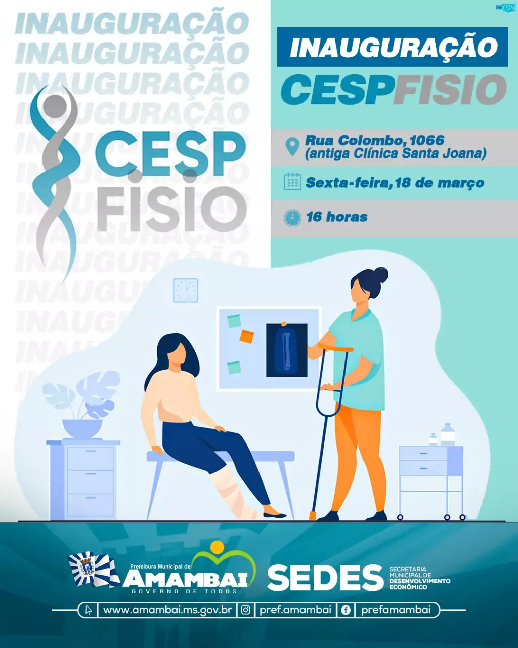 A Cesp Fisio será a mais nova clínica especializada em Fisioterapia de Amambai e oferecerá um novo conceito para a população, através de Renata que já está na profissão há 23 anos e da fisioterapeuta e colaborada Juliana Morais.
