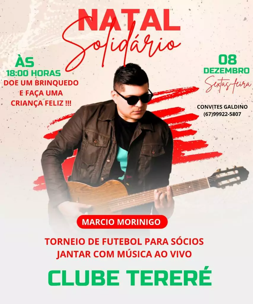 Os sócios do Clube Tereré junto a seus familiares e amigos realizam na noite desta sexta-feira, 8 de dezembro, mais uma edição do Natal Solidário. Com o evento, além do lazer dos participantes, serão arrecadados brinquedos para doação a crianças do município durante as comemorações natalinas.