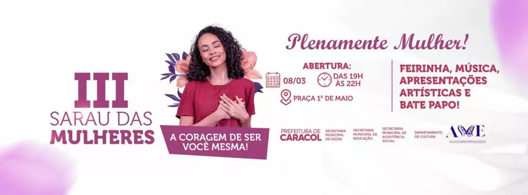 A Prefeitura de Caracol realiza nesta sexta-feira, 8 de março, em homenagem ao Dia da Mulher, a 3ª edição do Sarau das Mulheres, evento que tem como intuito reunir as mulheres do município para um momento de união com cultura, saúde e lazer.